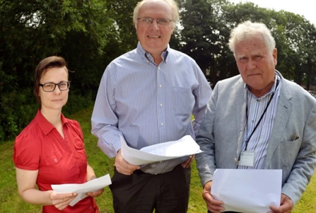 L-R Zoe Stewart, Peter Rock and Cllr. Donald Firth (Con, Holme Valley South) celebrate at the park.